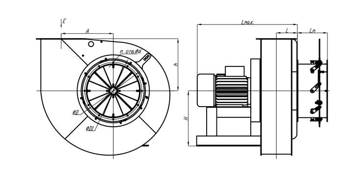 ВДН оборудование состоит из металлического корпуса, мощного электродвигателя и рабочего колеса с лопастями для забора воздуха. Конструктивно агрегат оборудован одним патрубком для забора. Сам корпус имеет спиральную форму с поворотом. Изготовление составных элементов осуществляется из разных материалов. Чаще всего используются легкосплавные и нержавеющие металлы. Соединение с котлом осуществляется при помощи специальных фланцев.